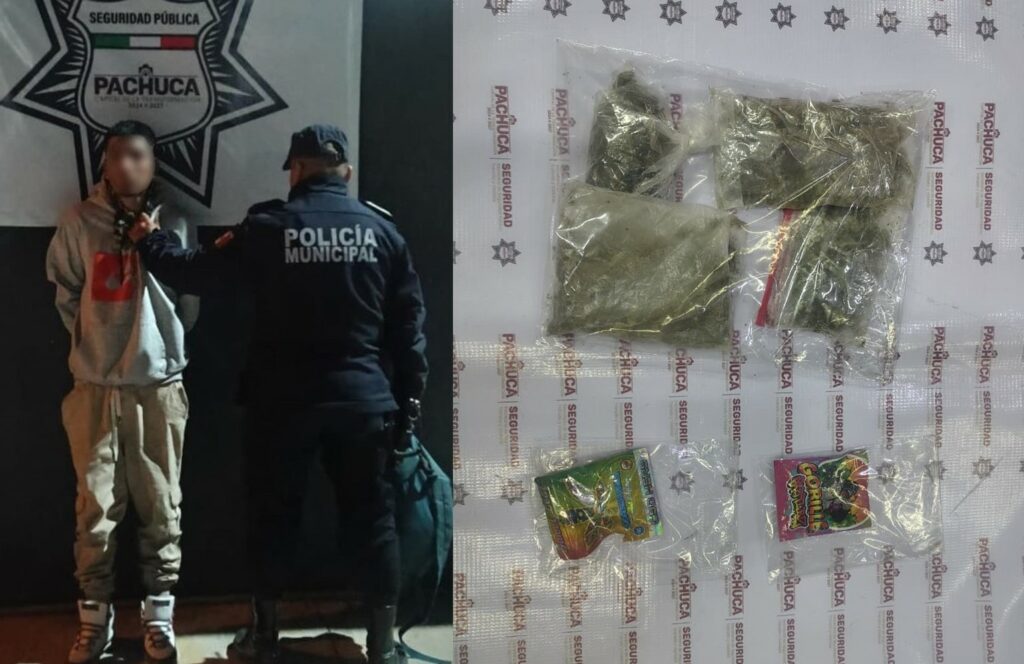 Durante la inspección preventiva, se le localizó hierba verde con características propias de la marihuana, por lo que se procedió a la detención de F. I. H., de 25 años, y a su traslado al área de retención de esta Secretaría para los trámites correspondientes.