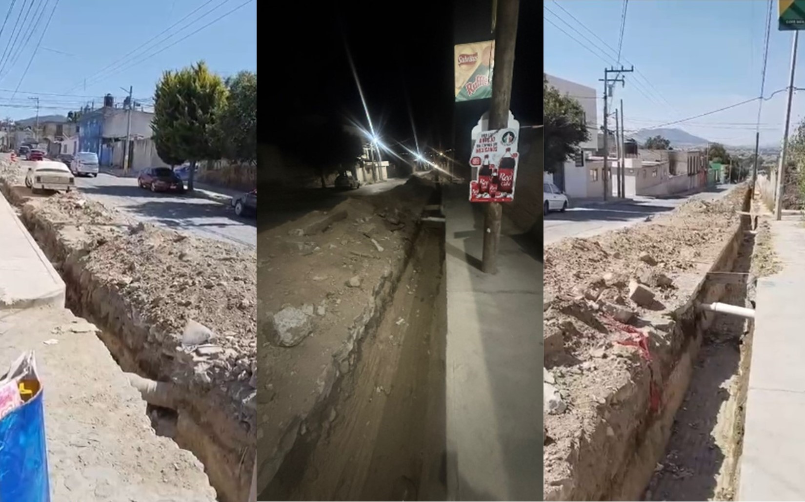TEPEAPULCO, Hgo. – Antes de que pueda registrarse un accidente de fatales consecuencias, habitantes de la colonia 18 de marzo de Tepeapulco piden cerrar una enorme zanja abierta, al parecer, para introducción de una red de agua potable.