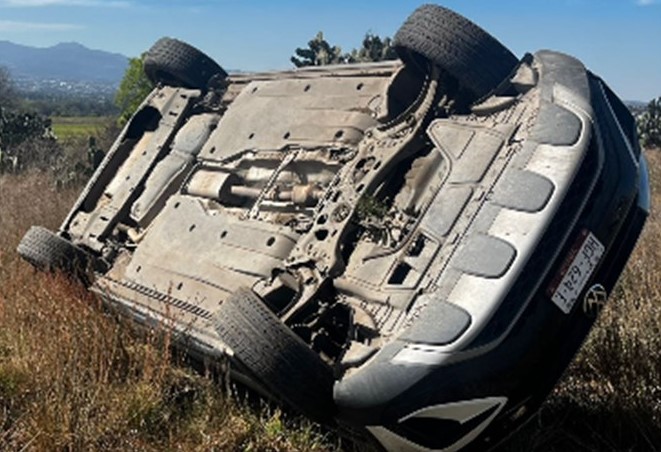Oficiales de Seguridad Municipal establecieron que sobre la carretera estatal Tezoquipa – Cuautepec de Hinojosa localizaron volcada la camioneta Volkswagen Taos, modelo 2022, color blanco, matrícula HGF624E.