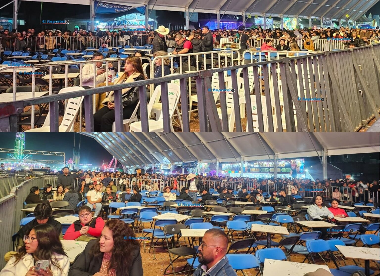 Así niños, adultos mayores y p oblación en general tuvieron que disfrutar los eventos de pie, mientras que cientos de mesas y sillas se mantenían vacías en la zona exclusiva para para los “poderosos”.