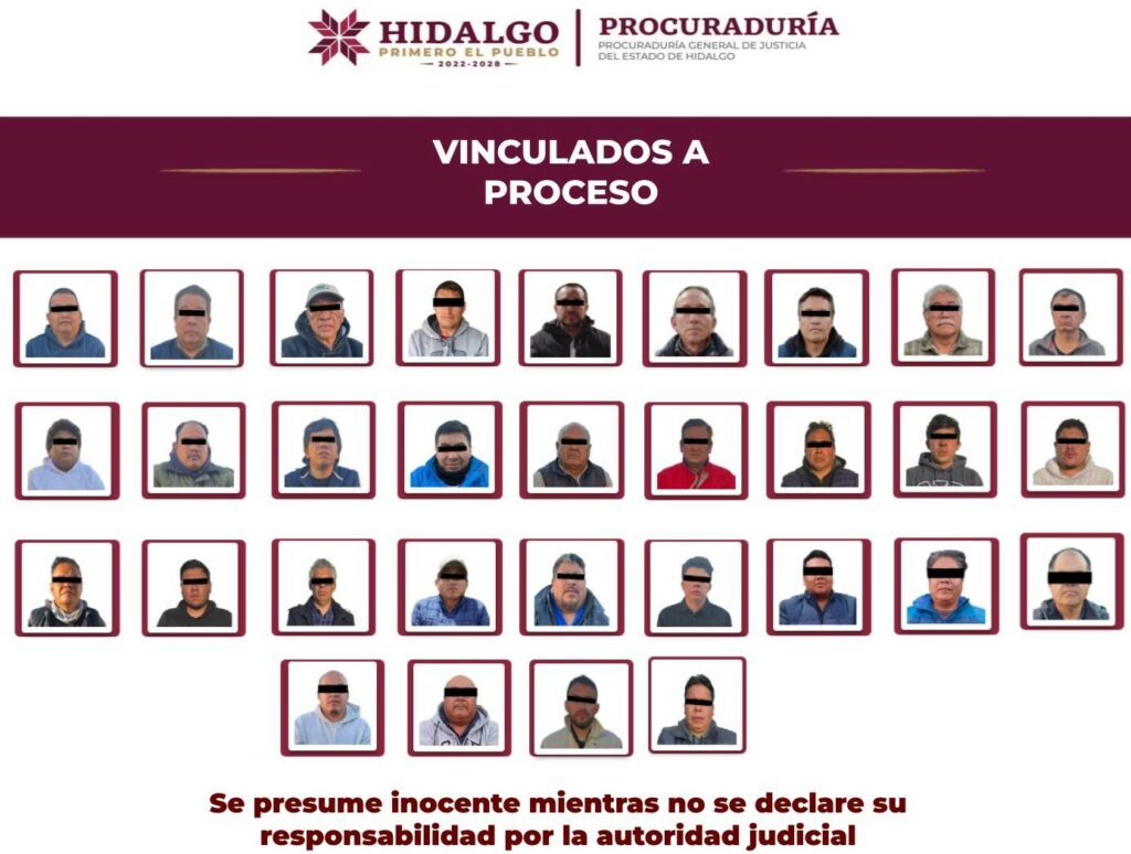 PACHUCA, Hgo. – La Procuraduría General de Justicia del Estado de Hidalgo (PGJEH), obtuvo hoy la vinculación a proceso para 31 personas detenidas el pasado 12 de febrero, durante un operativo a cargo de la Fiscalía General de Justicia del Estado de México (FGJEM), en la planta cementera de la Cooperativa Cruz Azul, en Tula de Allende.