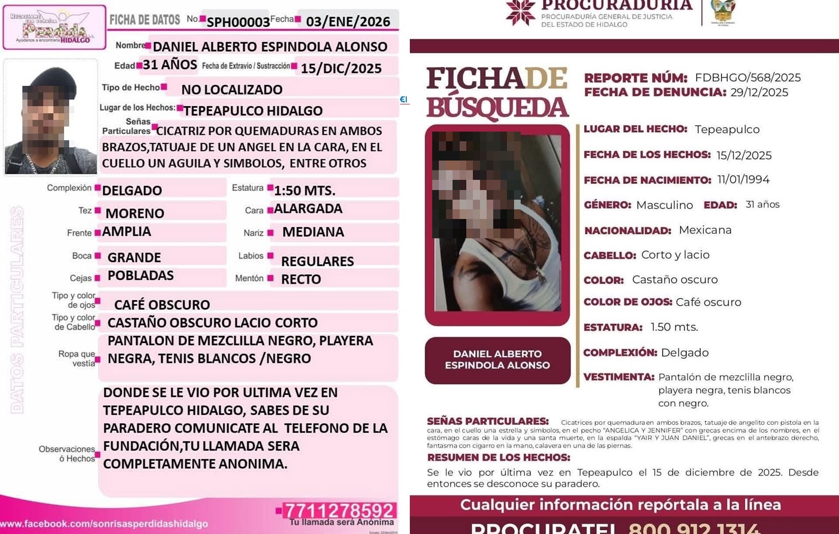 Procuraduría General de Justicia de Hidalgo dio a conocer que los restos óseos asociados con Daniel Albertom en nada corresponden y sigue en calidad de no localizado.