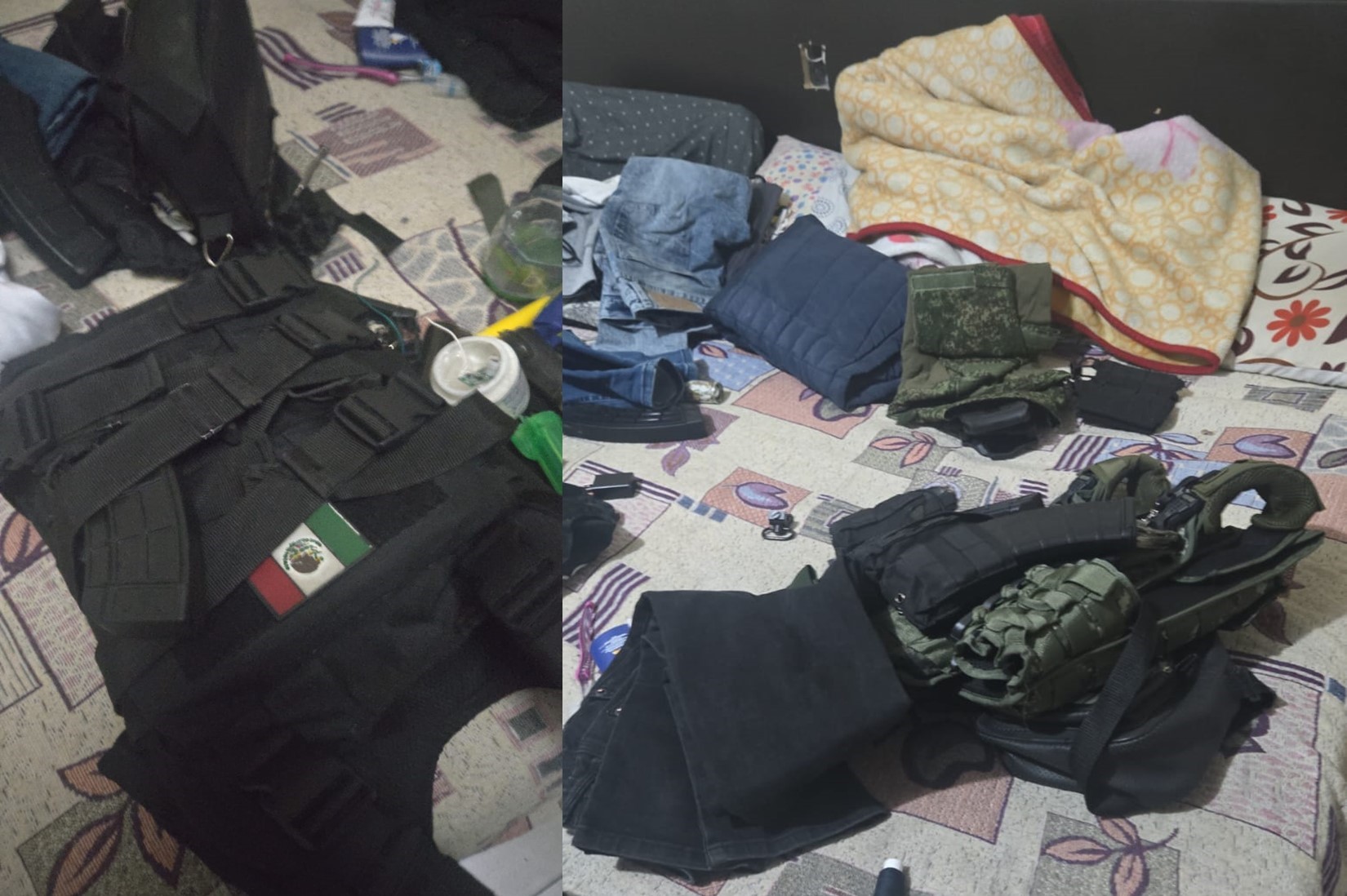 Durante el operativo fueron aseguradas armas largas, chalecos balísticos, cargadores y cartuchos útiles.
