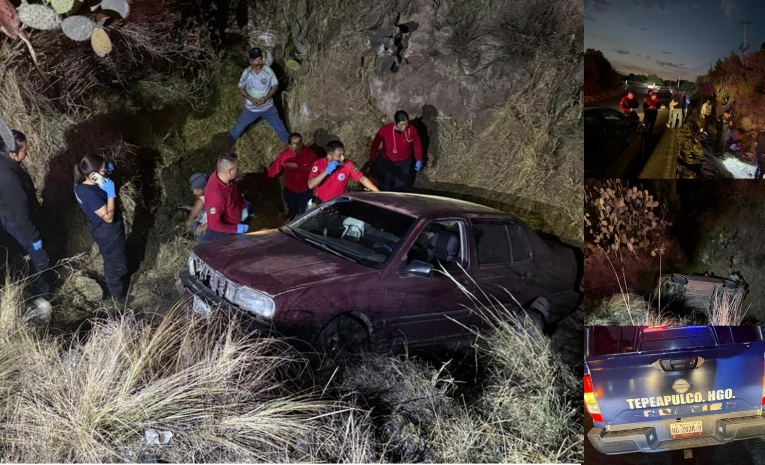 Al lugar llegaron paramédicos de Cruz Roja y oficiales de Seguridad Municipal de Tepeapulco descendieron para prestar auxilio al conductor del automóvil Volkswagen Jetta, color vino, matrícula TUJ-70-64.