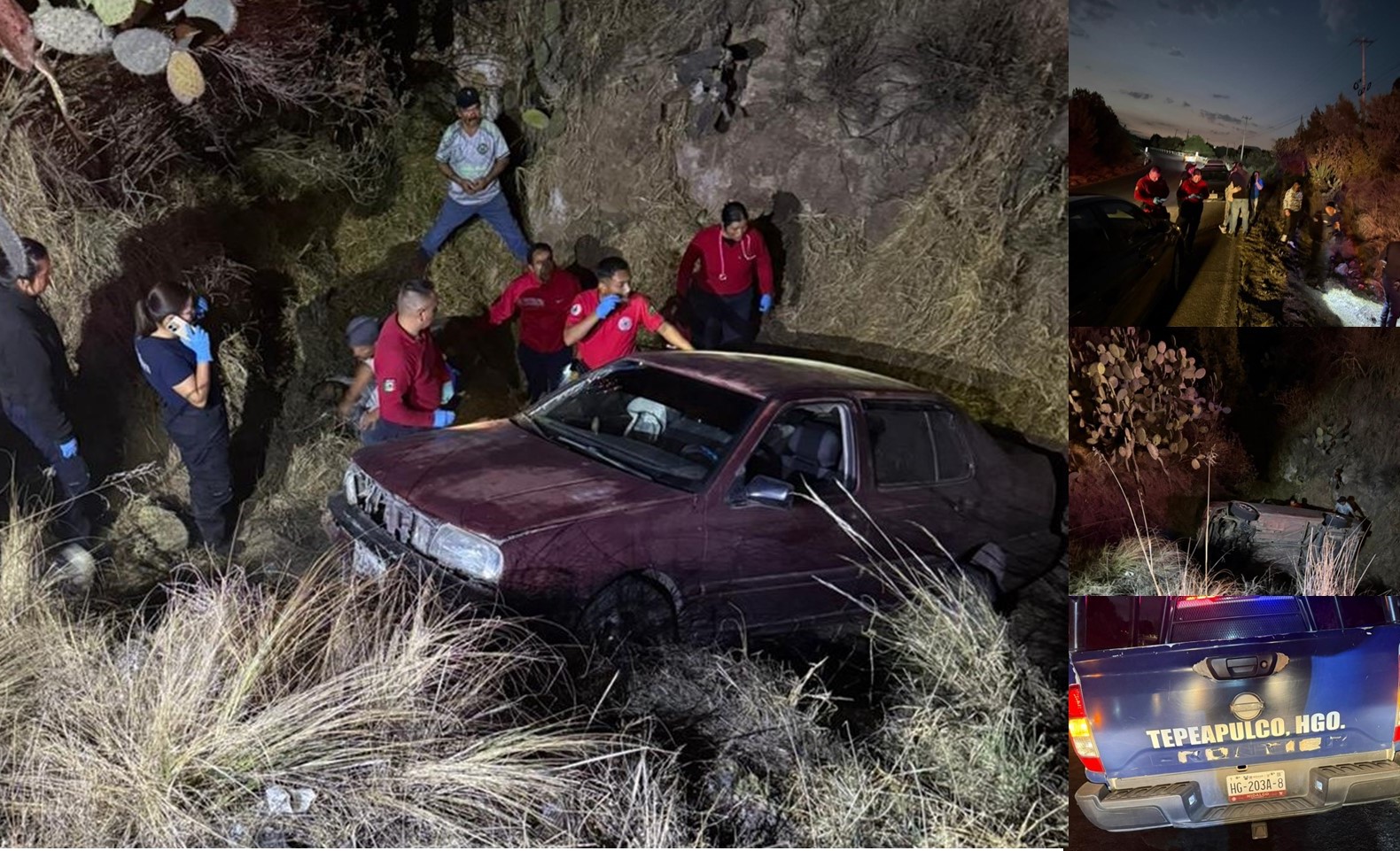 Minutos después de las 19:00 horas de hoy, se reportó la volcadura de un coche que cayó a un barranco en el referido tramo carretero.