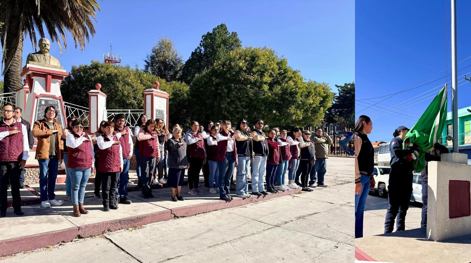 EMILIANO ZAPATA, Hgo. – La mañana de ayer, se llevó a cabo el acto de honores a la bandera y el izamiento de bandera en honor al Natalicio de Benito Juárez.