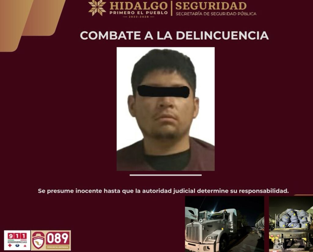 PACHUCA, Hgo. – Un tractocamión con plataforma cargada de 35 toneladas de varilla, cuyo valor aproximado es de 850 mil pesos, fue recuperado por elementos de la Secretaría de Seguridad Pública de Hidalgo (SSPH), luego de atender de manera inmediata el reporte de robo sobre la autopista México–Pachuca. En la acción se aseguró a un hombre de 23 años de edad, originario del Estado de México.