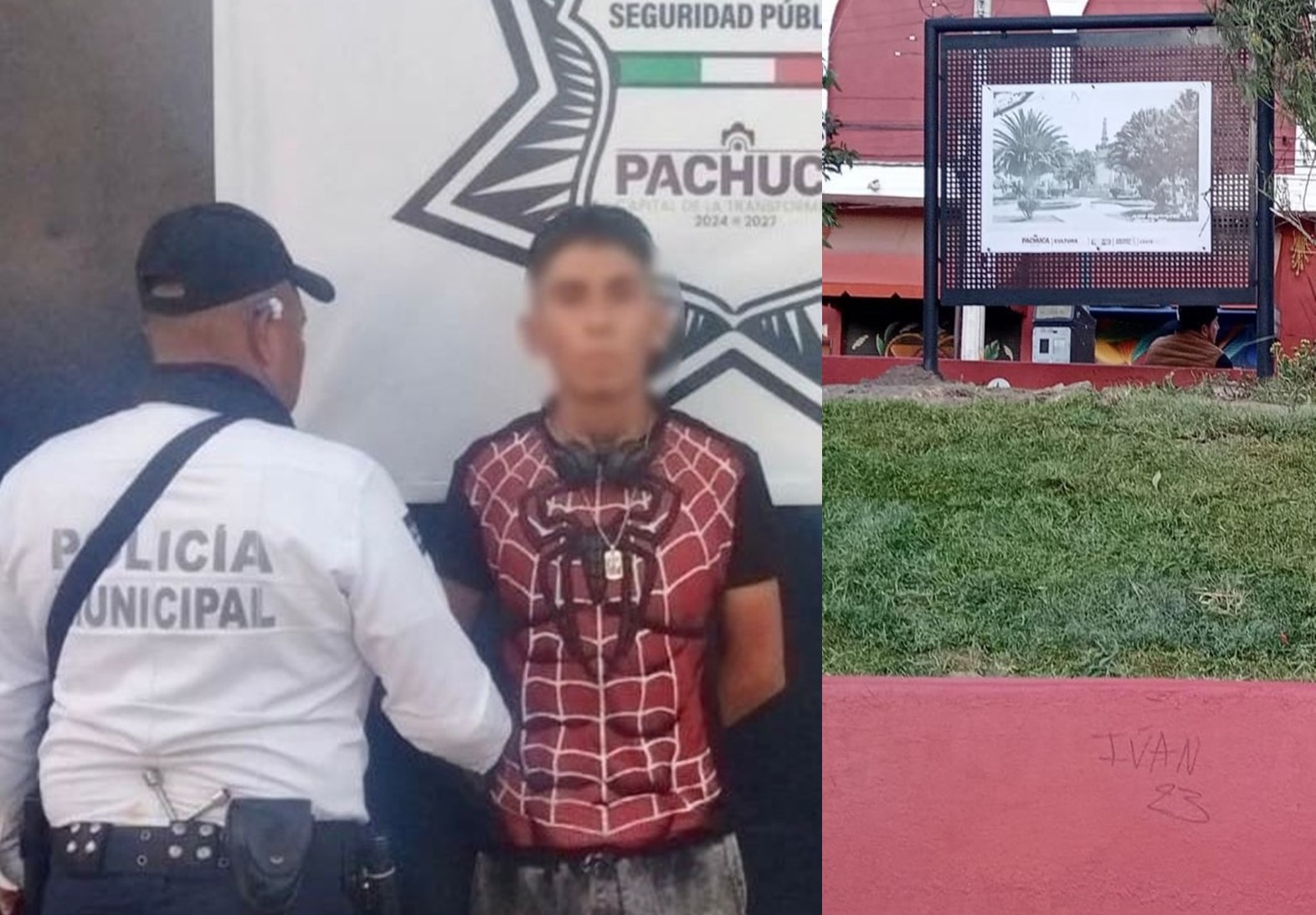 PACHUCA, Hgo. – La Secretaría de Seguridad Pública, Tránsito y Vialidad de Pachuca informa que, durante un recorrido de seguridad y vigilancia sobre la calle José María Morelos, a la altura del Mercado Primero de Mayo, elementos policiales detectaron a una persona del sexo masculino realizando pintas en bancas de concreto recientemente intervenidas al interior de Plaza de la Constitución.