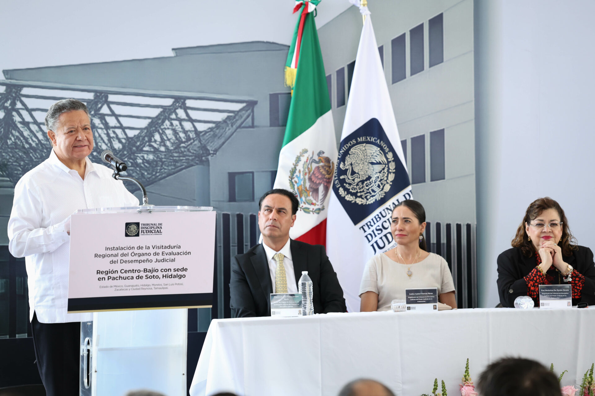 PACHUCA, Hgo. – El gobernador Julio Menchaca Salazar acompañó al presidente de la Suprema Corte de Justicia de la Nación (SCJN), Hugo Aguilar Ortiz, en la instalación de la Visitaduría Regional del Órgano de Evaluación del Desempeño Judicial en la Región Centro-Bajío, con sede en Pachuca, Hidalgo.