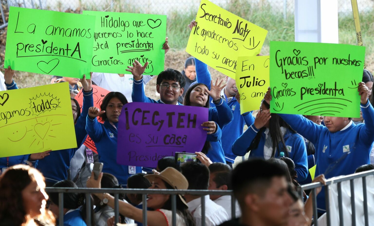 Ante miles de habitantes de esta zona de la Otomí-Tepehua, la titular del Ejecutivo federal y el mandatario hidalguense entregaron tarjetas de los Programas del Bienestar a beneficiarios y beneficiarias de la región, entre ellas la señora Ángela Vargas, quien agradeció a la primera mujer presidenta de México por apoyar a las mexicanas a través de estrategias la como la pensión para mujeres de 60 a 64 años.