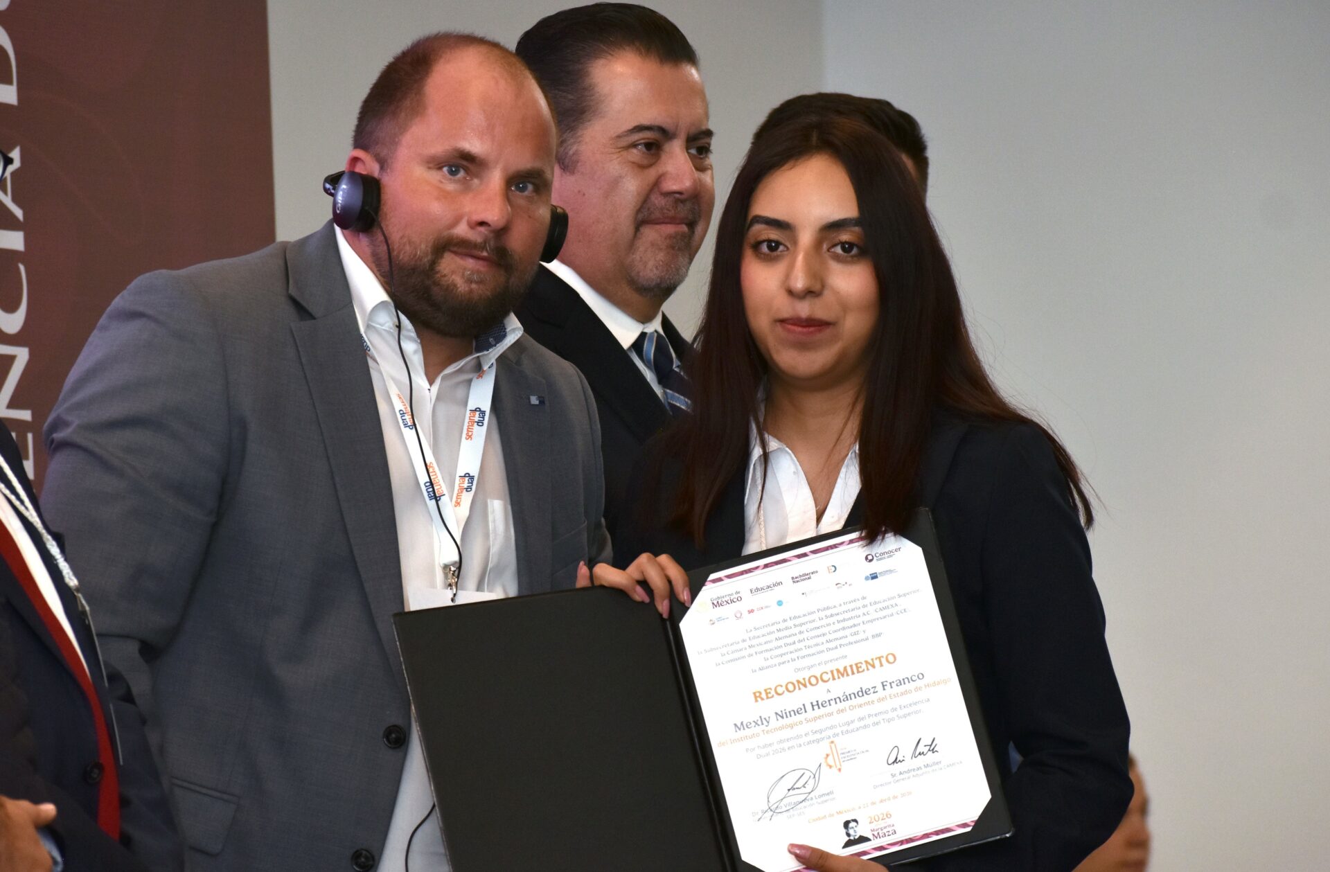 APAN, Hgo. – Mexly Ninel Hernández Franco, egresada del Instituto Tecnológico Superior del Oriente del Estado de Hidalgo (ITESA), obtuvo el segundo lugar en el “Premio de Excelencia Dual, VET Excellence”, en la categoría de Educación Superior, gracias a su proyecto “Sistema automatizado integral para el control de inventarios”, desarrollado para la empresa CAJAPLAX.